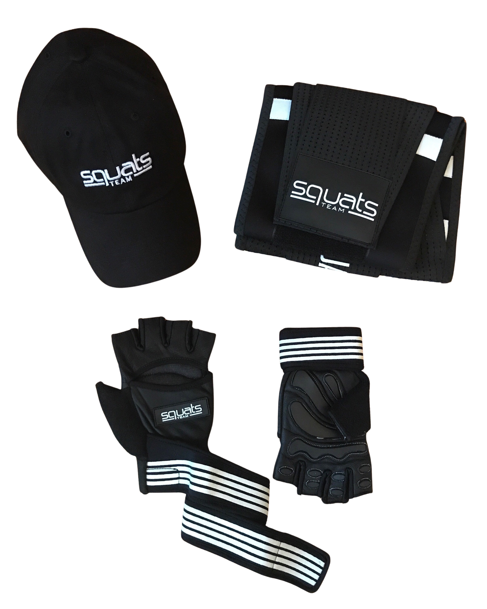 SquatsTeam COMBO/SET: Women's Waist Training Gym Belt + Lifting Gloves + Gym Hat